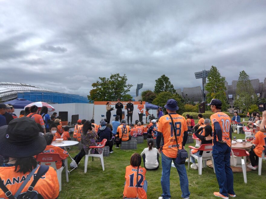 サッカーJ3リーグのAC長野パルセイロはが2025年10月13日(月・祝)、長野Uスタジアムでのカマタマーレ讃岐戦の前に「長野から地球と海を考える」をテーマにした環境啓発イベントを開催、参加者が周辺のごみ拾いをしました。