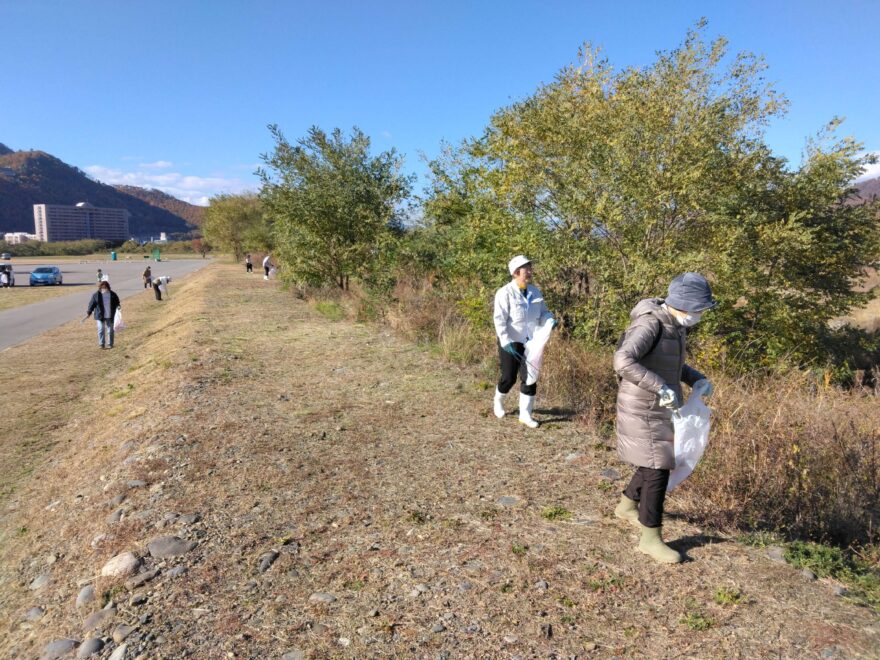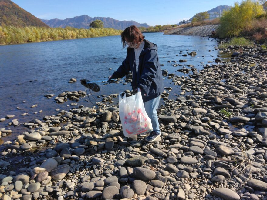 千曲市でレジ袋削減などに取り組んできた市民有志が2025年11月、川ごみ問題を考えるグループを立ち上げ、河川敷でごみ拾いをしました。
