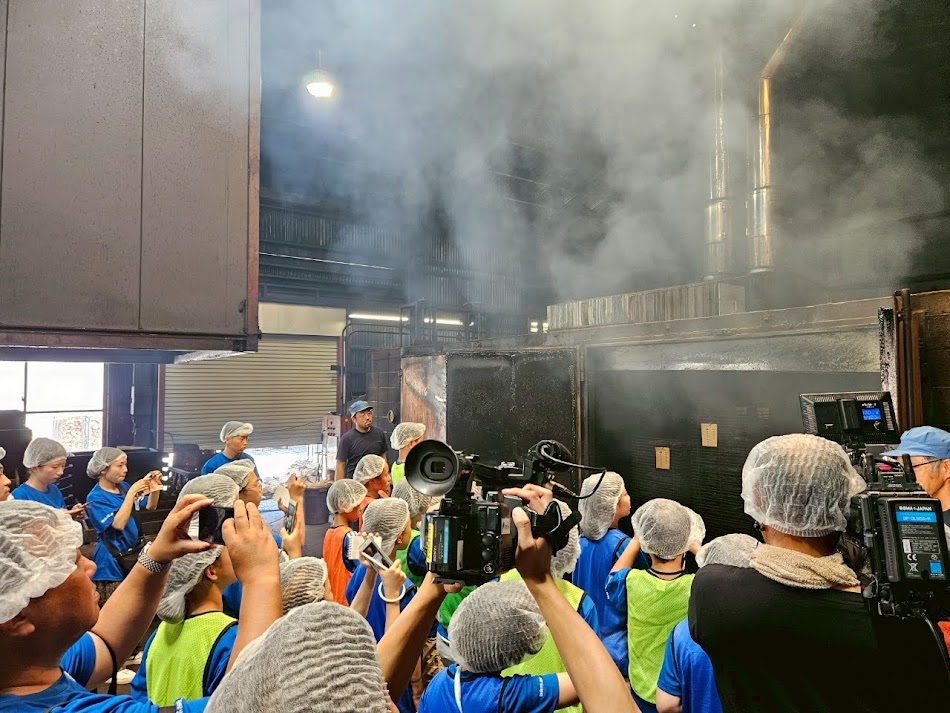 隊員たちが注目したのは「焙乾(ばいかん)」の作業。設備の扉を開けると、煙が立ち上りました。カツオの身をいぶすのに使われていたのは長野県産のコナラの薪です。