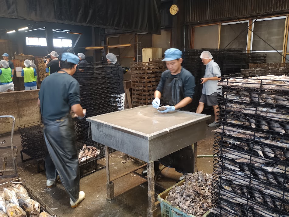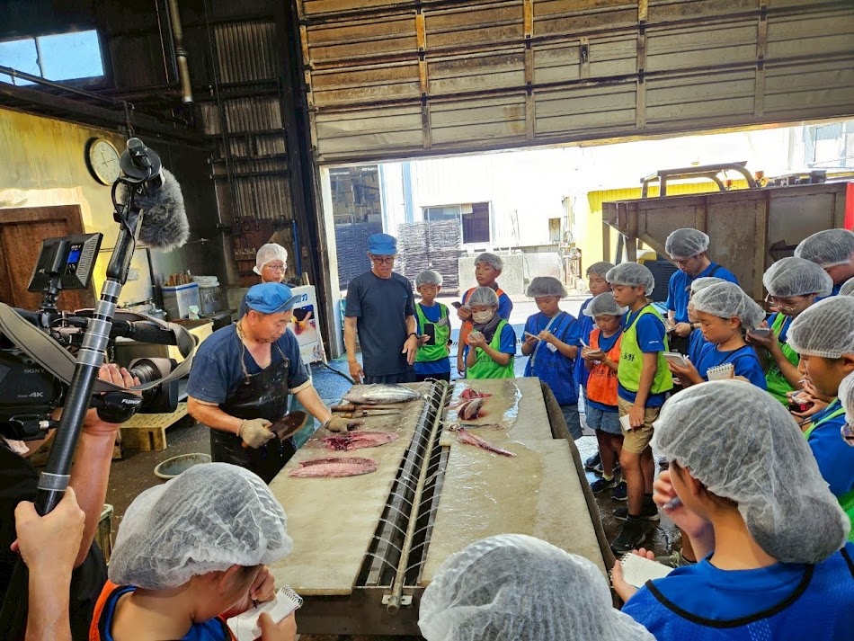 訪れたのは、水産加工の工場が集まる団地の中にある「トマル水産」の工場。講師は社長の大石智之さんです。工場に一歩足を踏み入れると、鰹節の香りが漂っていて、隊員たちからは「いい匂い」との声が上がりました。