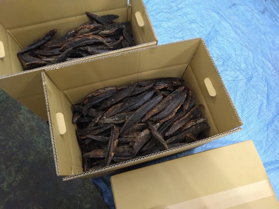 枯節は、このあと「削り作業」があり、カビの力で水分を取ってうま味を凝縮させる「カビ付け」と天日干しを繰り返して、ようやく完成です。