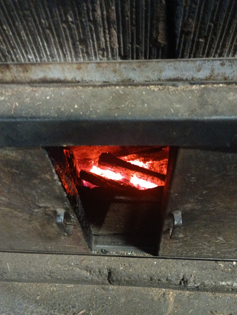 次の工程は「焙乾(ばいかん)」。薪を燃やしていぶし、香りをつけながら乾燥させます。荒節はこれで完成。