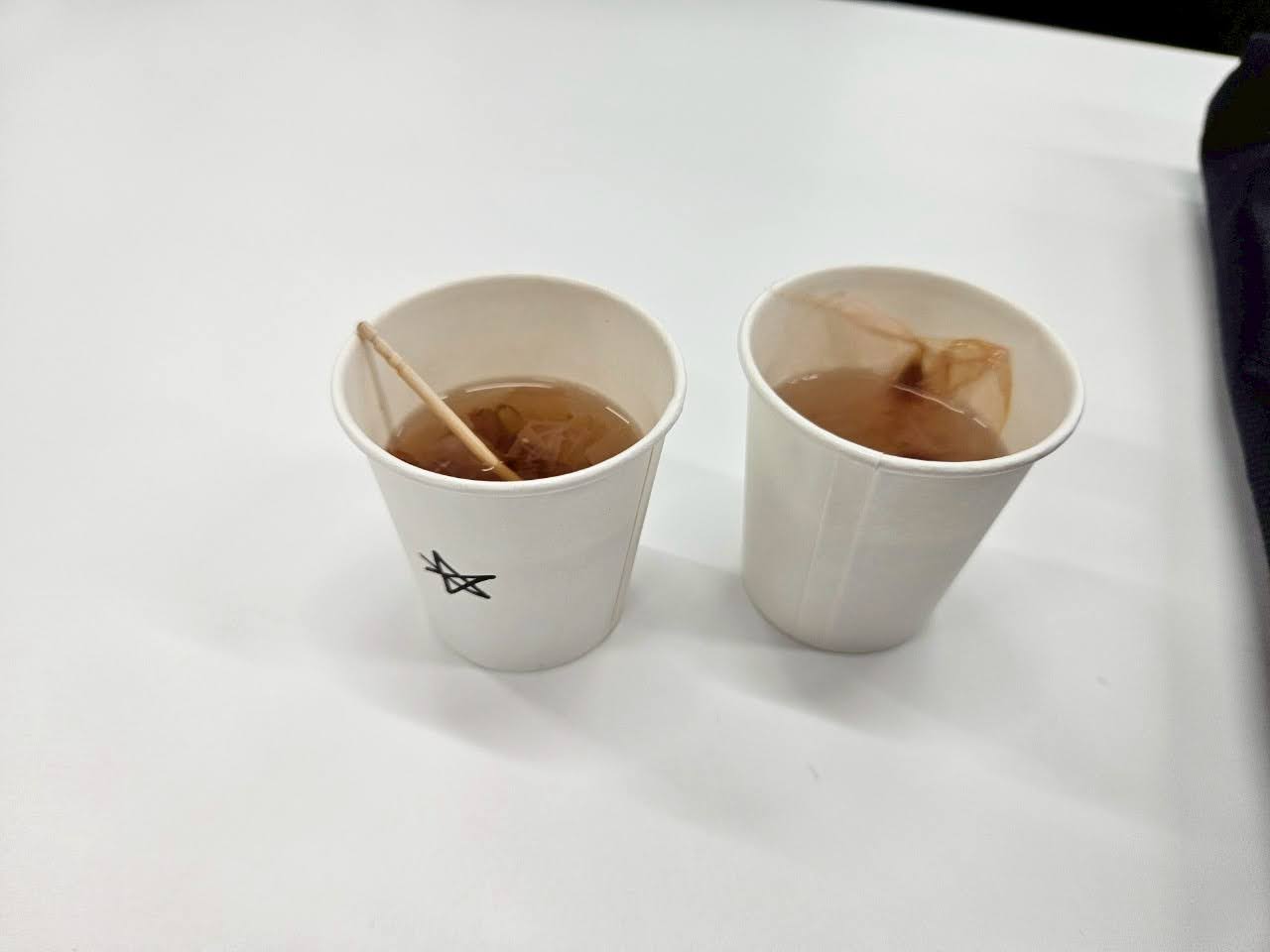 出汁(だし)も用意してもらいました。鰹節だけの出汁としょう油を少し入れたものの2種類。
