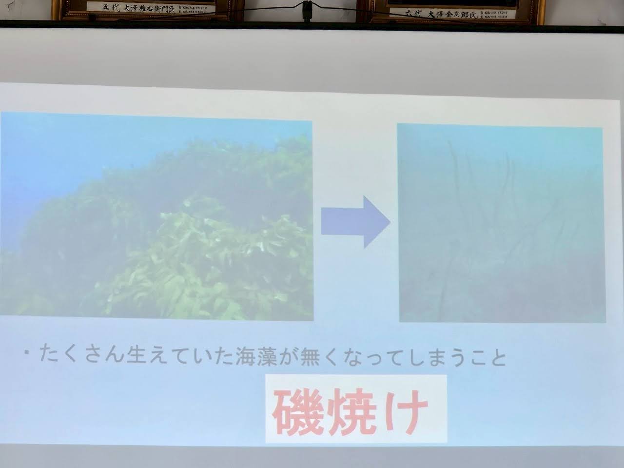 さらに海水温の上昇で「磯焼け」が発生し、藻場(もば)と呼ばれる魚の生息場所の減少。漁師さんたちが海藻の復活に地道に取り組んでいると説明してくれました。