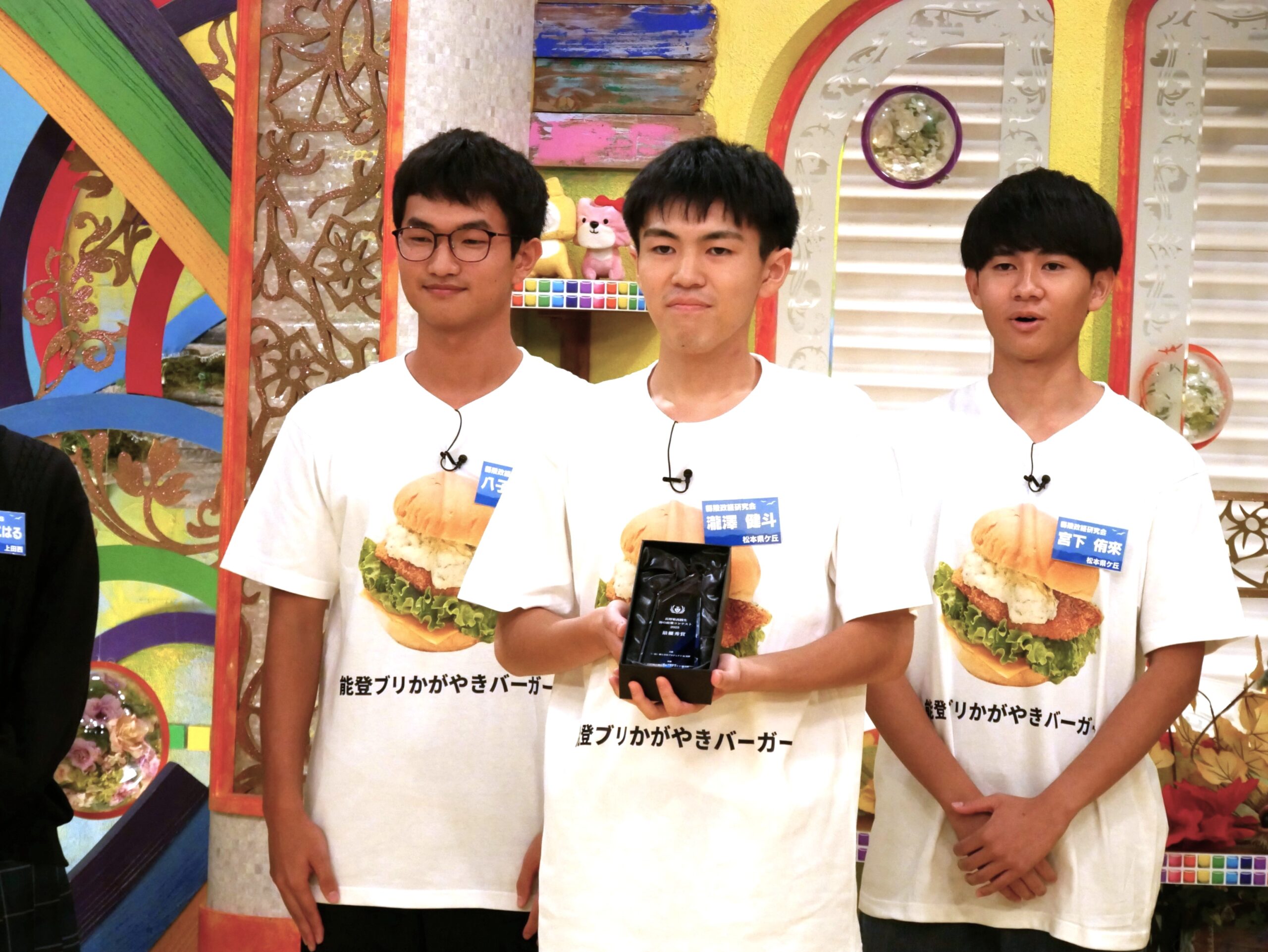 松本県ヶ丘高校「縣陵政経研究会」が提案したのは、能登半島地震の復興支援を目的とした「能登ブリかがやきバーガー」の販売です。支援、漁業振興につながる政策・提案を模索、辿海産物で信州と能登をつなぐアイデアに辿り着きました。