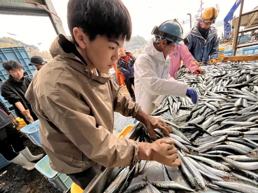事前合宿で能登を訪れた3人。地震の爪痕を目の当たりにし、漁師や地域振興に取り組む人たちと交流する中で知った人口減少などの課題も知りました。これらを受けて、能登の支援、漁業振興につながる政策・提案を模索し、辿り着いたのが海産物で信州と能登をつなぐアイデアでした。