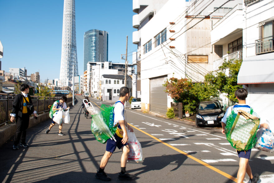 競技エリアは墨田区の下町情緒が残る商店街や住宅街。各チーム、細い路地などに繰り出して、ペットボトルや空き缶、たばこの吸い殻などを拾い集めました。