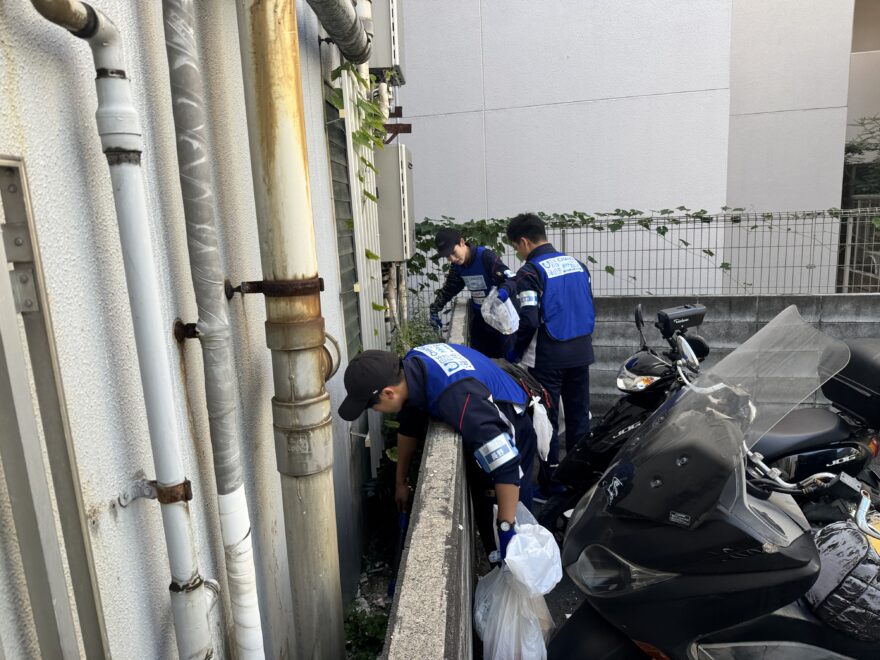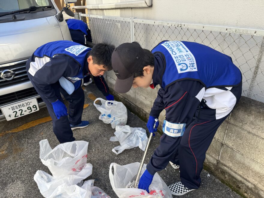 県大会の経験を活かし、3人はコインパーキングやフェンスの後ろを探し回り、たくさんのごみを拾い集めました。