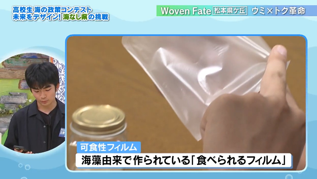 松本県ヶ丘高校「WOVEN FATE」は探究科に所属する3人が集まったチーム。「海のない長野県と海をつなぐ」という課題に取り組む中で、コンテストへの参加を決意。一次選考では「寒天で海を手元に」というユニークな提案をしました。