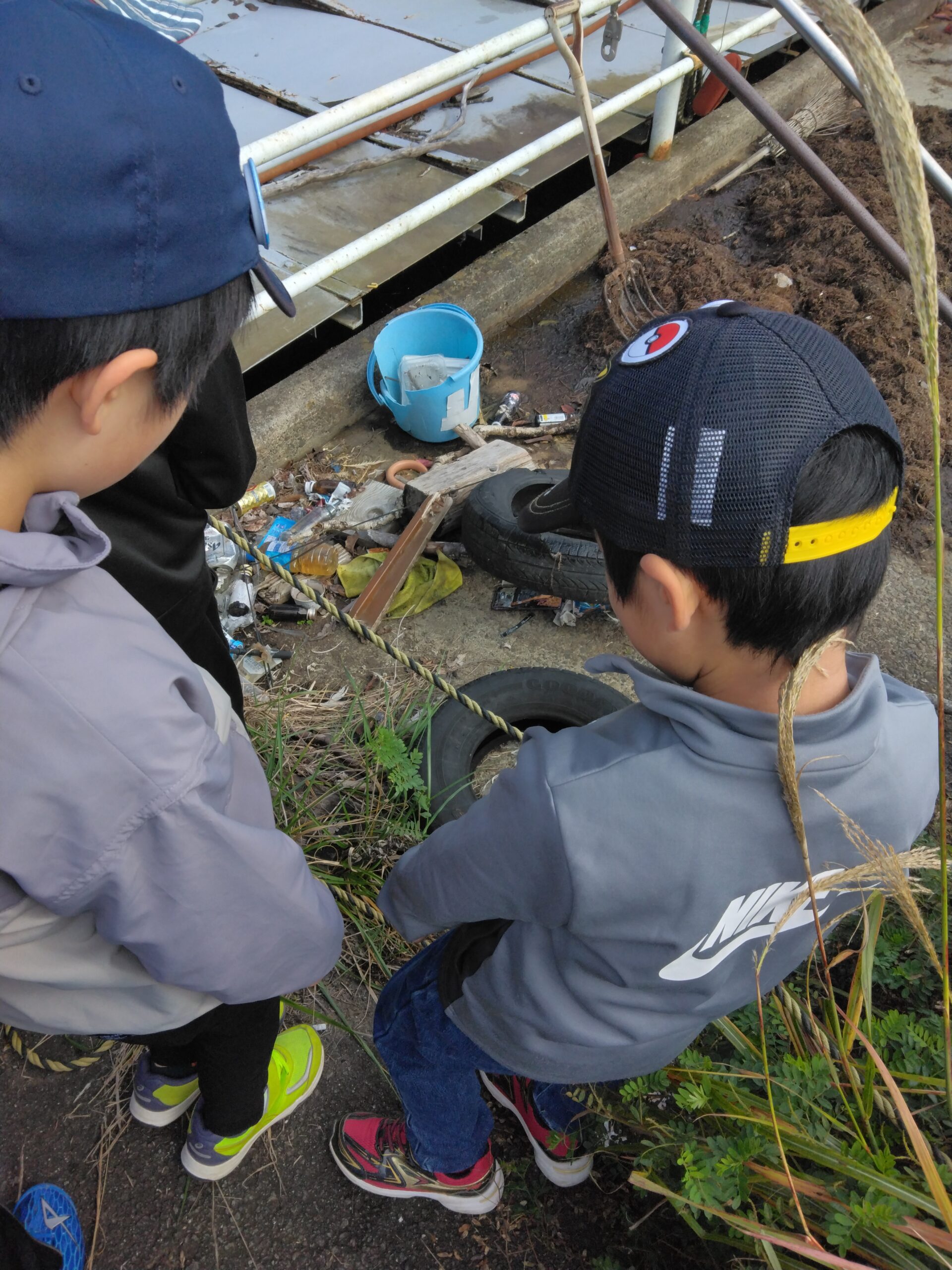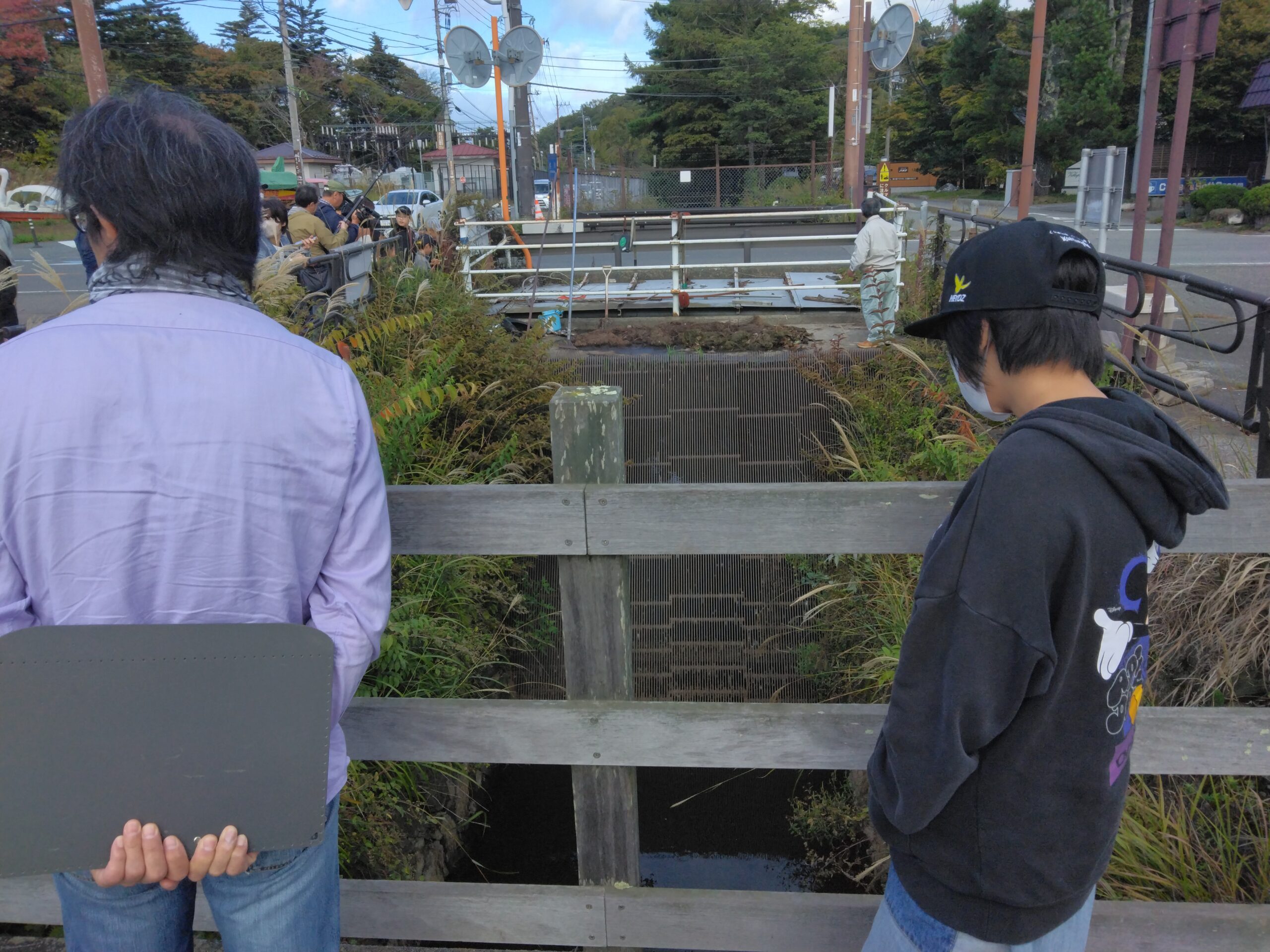 山中湖は観光地ということもあり、人の往来も多い場所。ごみの流入も多いそうです。このため、最上流部には柵が設置されていて、缶やペットボトルなどの大きなごみは、ここで食い止められていました。