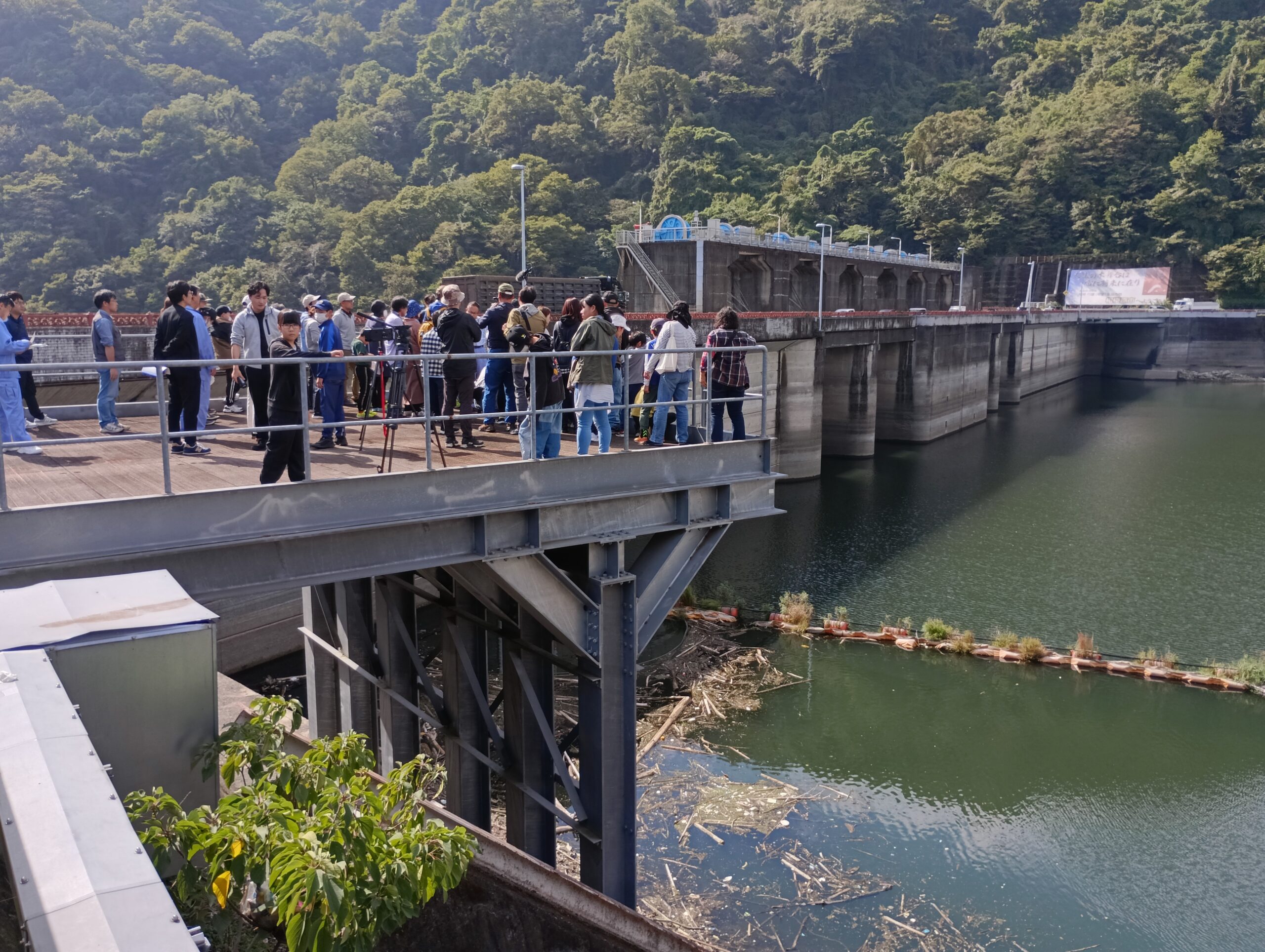 ダム管理事務所の担当者から、台風などの際はダムに大量のごみが溜まり、クレーン車で撤去していることなどの説明がありました。