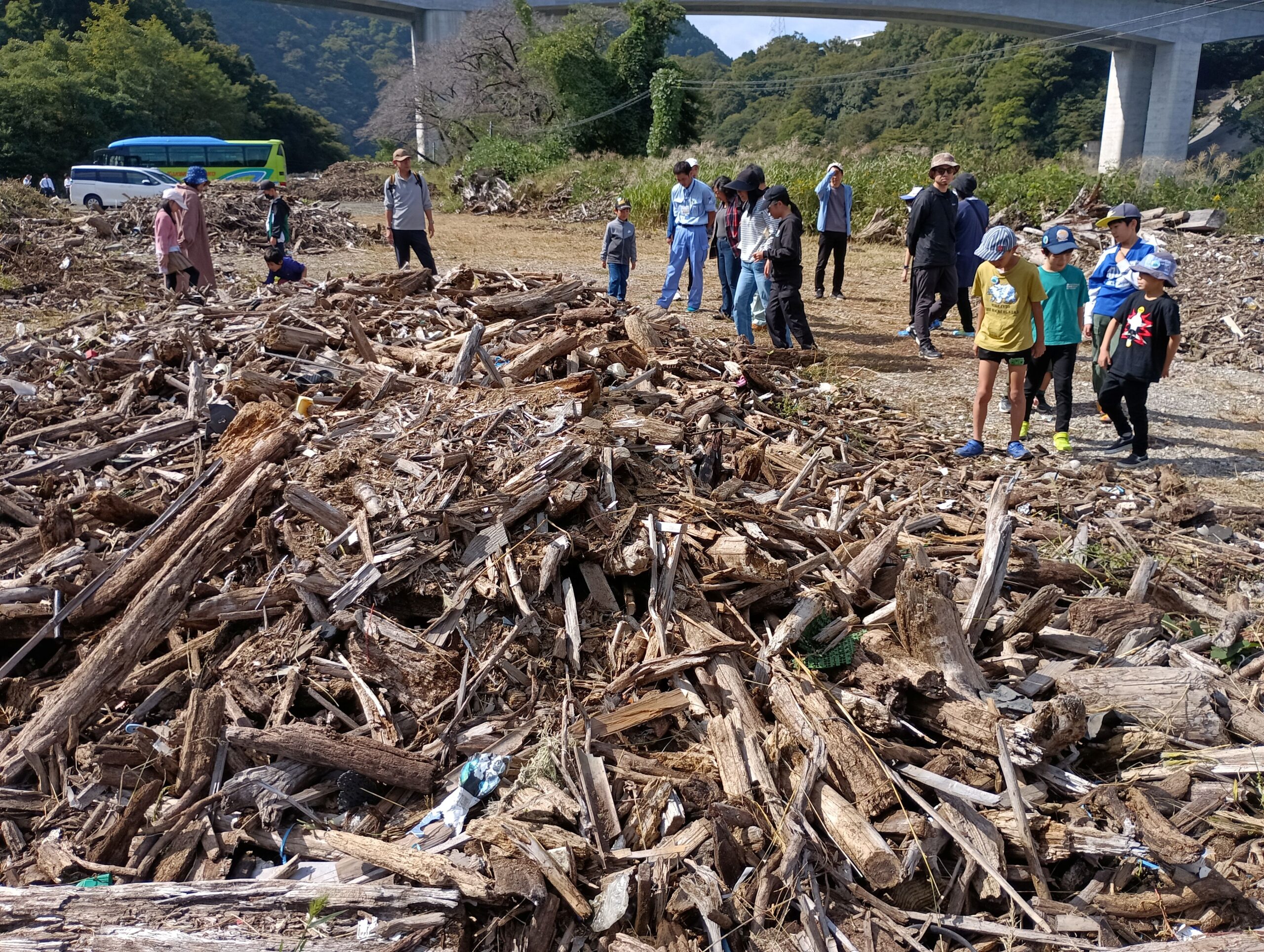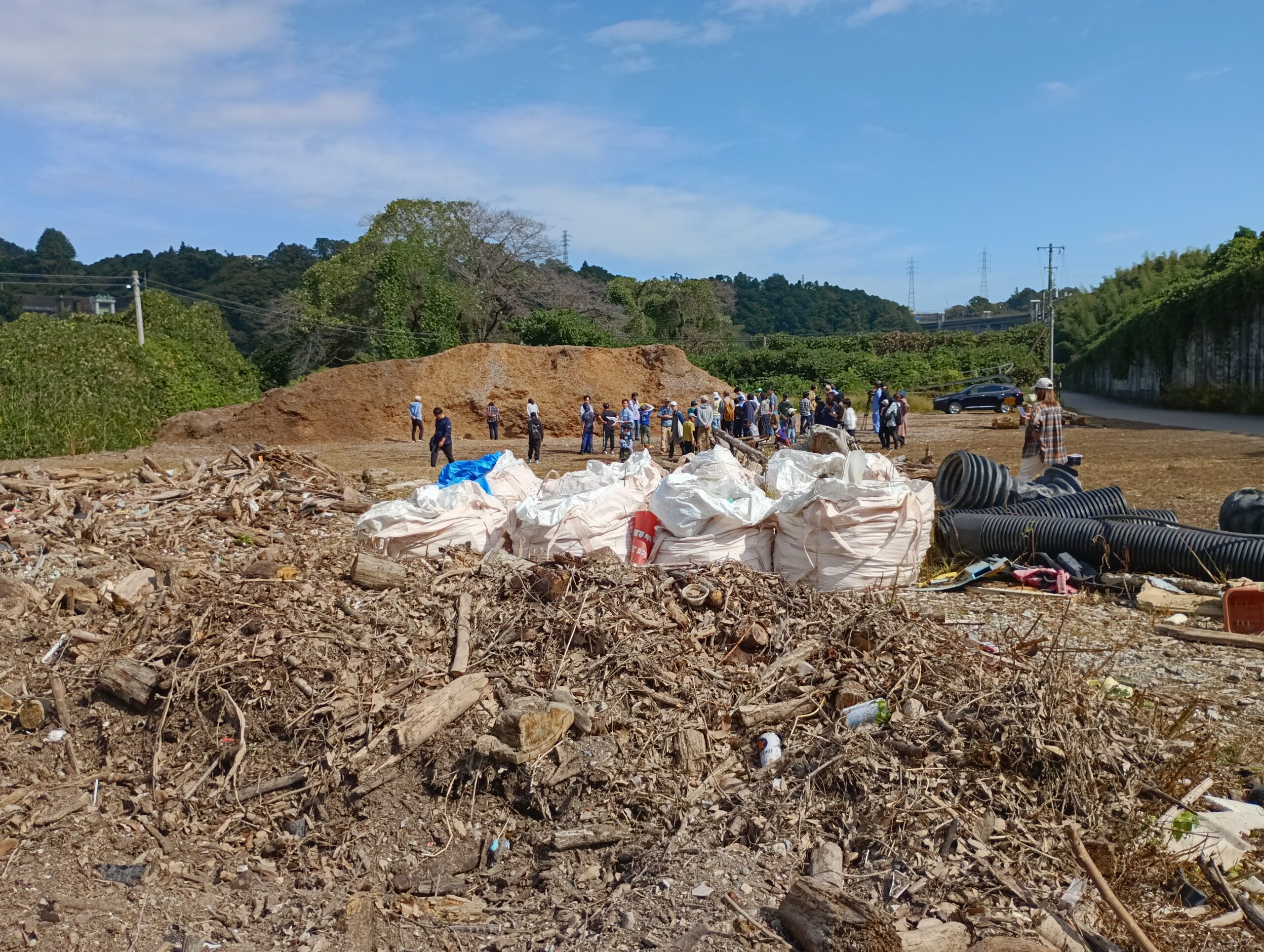 集積場所には木くずと一緒に、たくさんのペットボトルや生活ごみが混じっていて、処理や分別も大変なことを目の当たりしました。